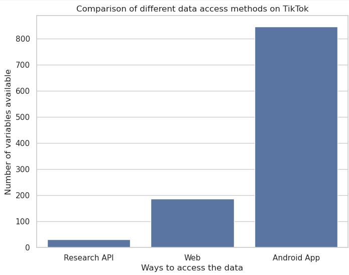 Image: The number of variables available on TikTok through different means of data acccess.