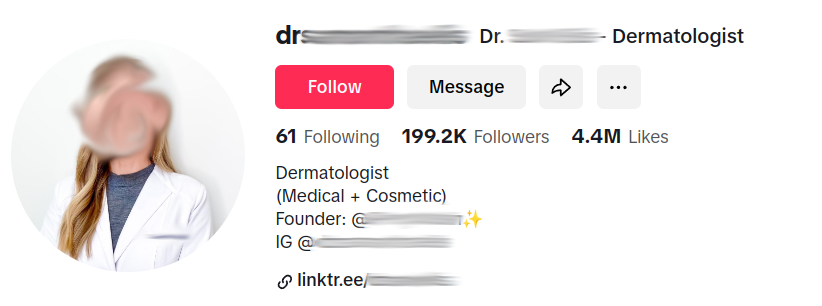 Firstly, the our data reveals a wide range of medical professionals active on TikTok. This diverse group includes students, general practitioners, specialists (e.g., cardiologists, urologists), and dentists. Some influencers use their medical background to promote products like period underwear through their bio links, while others focus on medical content but also participate in media appearances.
